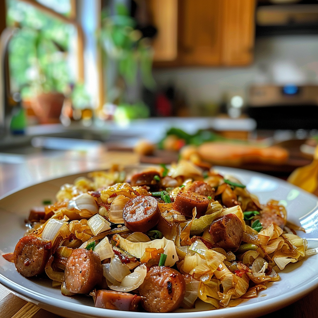 - Cabbage and Sausage with Onions is not just comfort food; it’s a hug on a plate