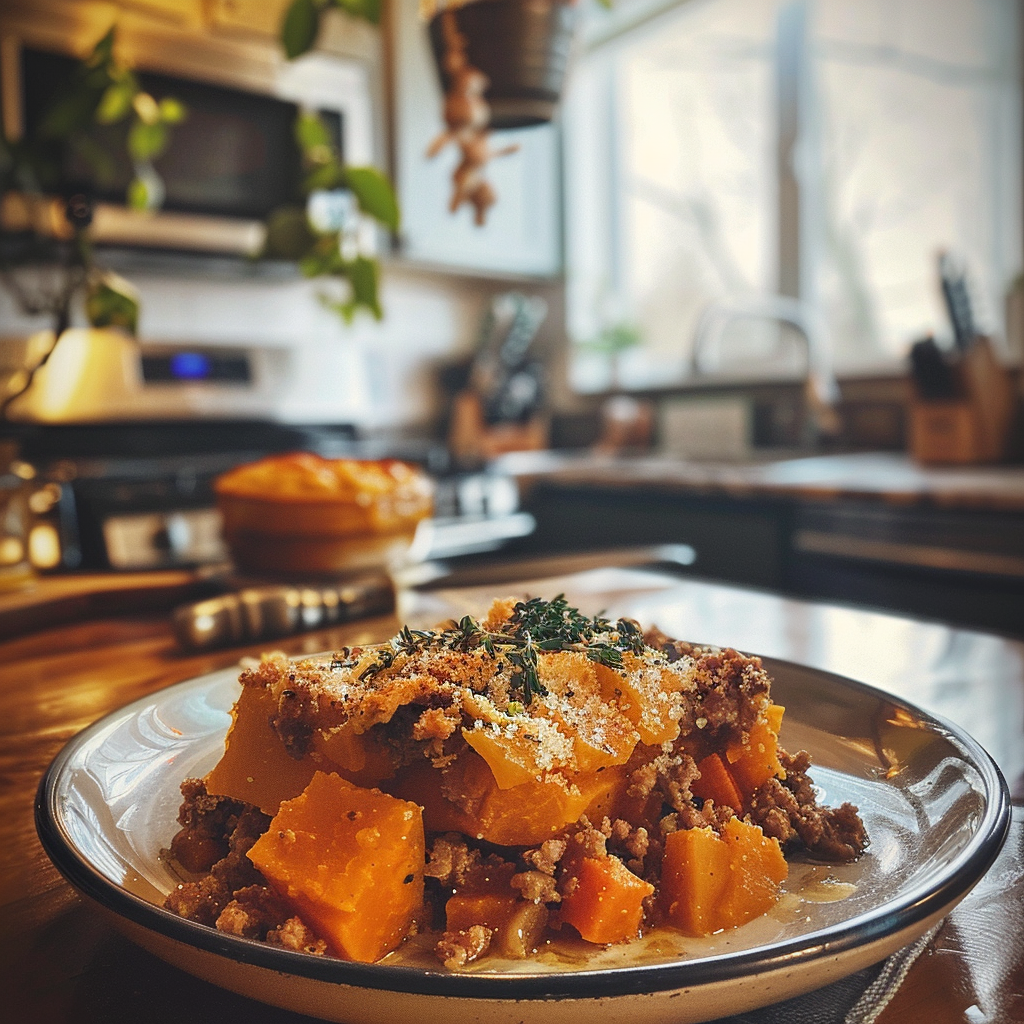 - Sweet potato and ground turkey bake is a hearty, nutritious dish that brings comfort with every bite
