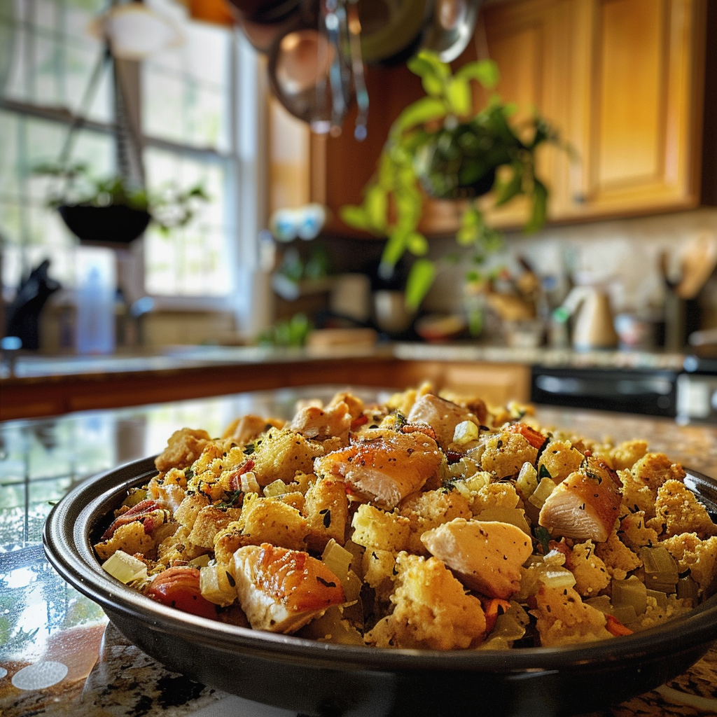 - The combination of tender chicken, savory stuffing, and delightful herbs makes your kitchen smell like a cozy family gathering
